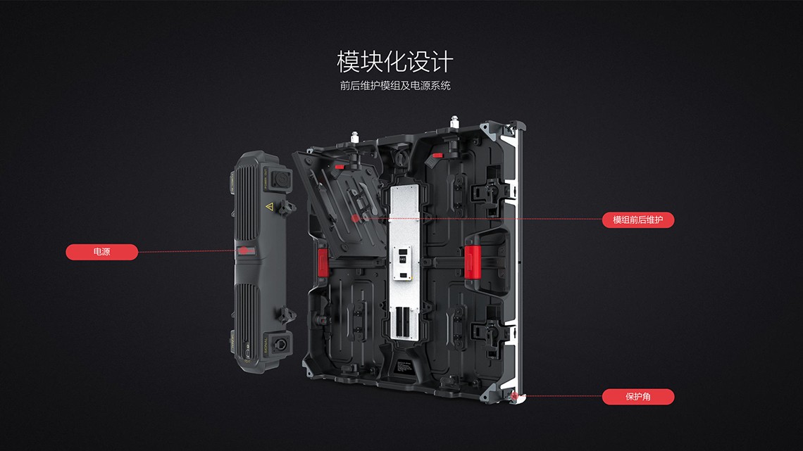 V-Spirit租賃系列包含: VSI戶內租賃系列、VSO戶外租賃系列、VSF地磚租賃系列。是利亞德智慧顯示新代租賃屏系列,采用體式高強度框架設計,箱體、模組、電源模塊化設計。